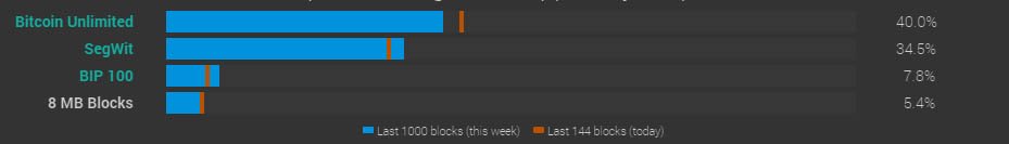 "As BugUnlimited's credibility continues to drop so to does their hash power. #Segwit now w/in only a few % of passing them up. Beautiful!" - Vortex